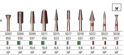 Бор із спеченого алмазу OkoDent (Німеччина) використовується з прямим наконечником і призначений для обробки твердих матеріалів. Робоча частина зі спеченого алмазу зберігає стабільні ріжучі властивості протягом усього періоду експлуатації.